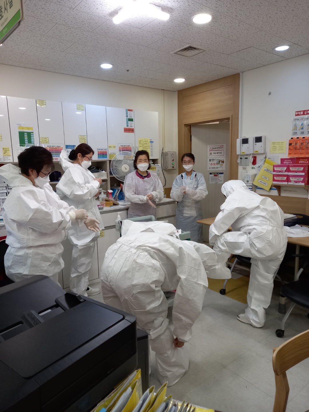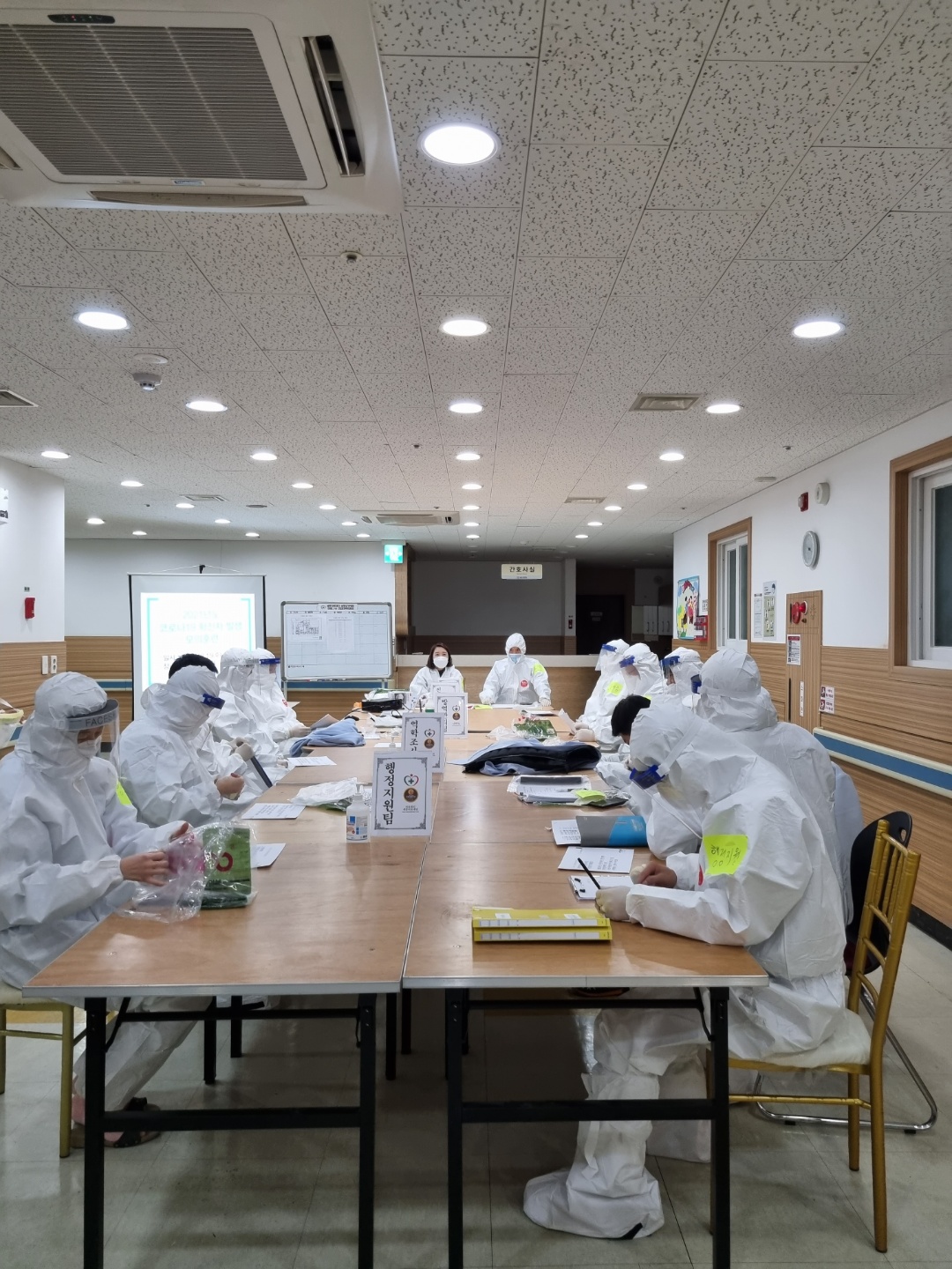 실제 코로나 발생시 대처 훈련을 실시 하였습니다.