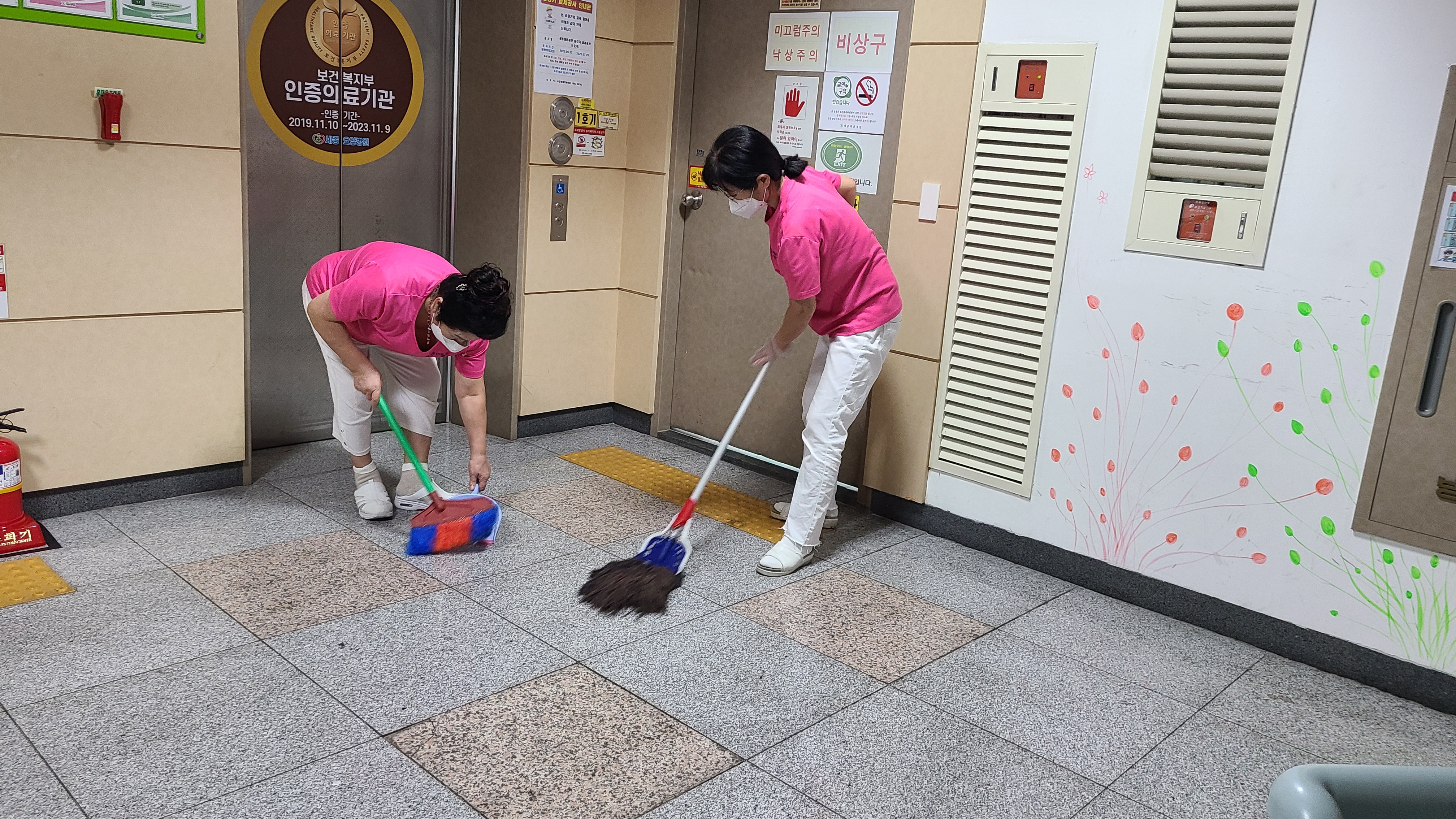 병실 소독, 주변의 쓰레기와 잡초 제거 등