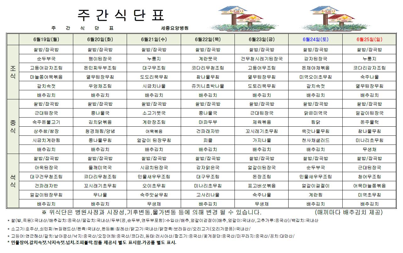 2023년 6월 셋째 주 식단표입니다.