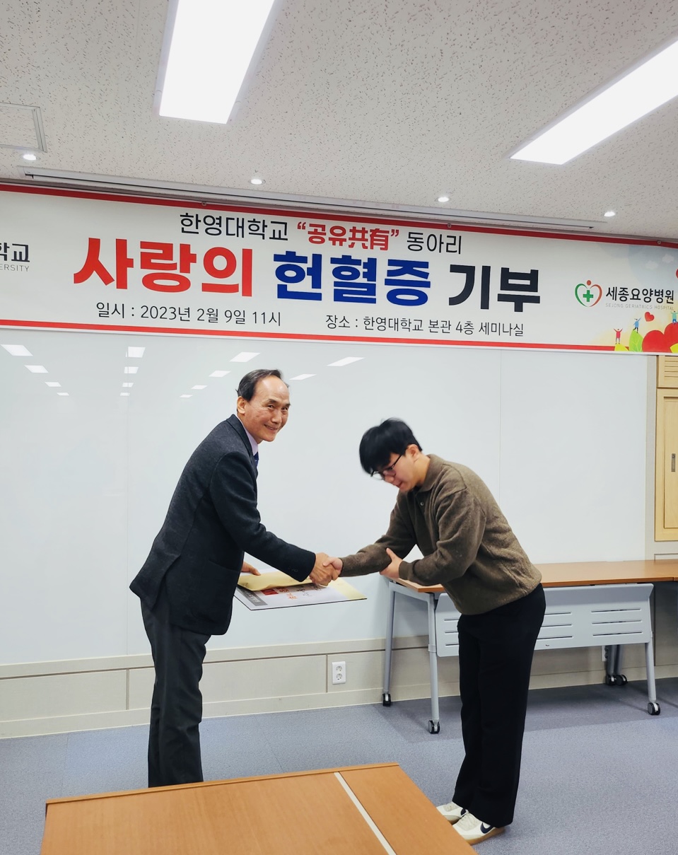 한영대학교 헌혈동아리 '공유'(신광수 교수)에서