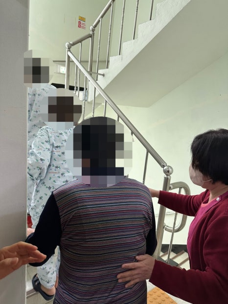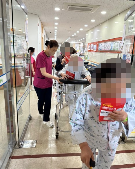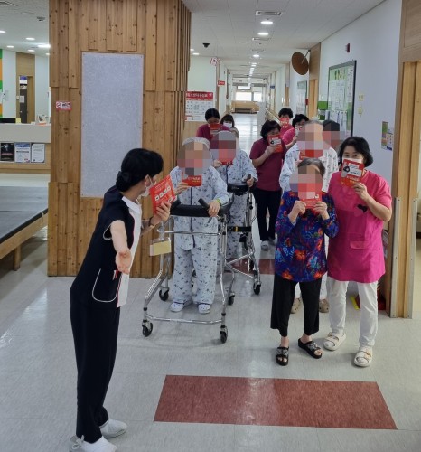 병원에서 지내시는 환자와 직원,