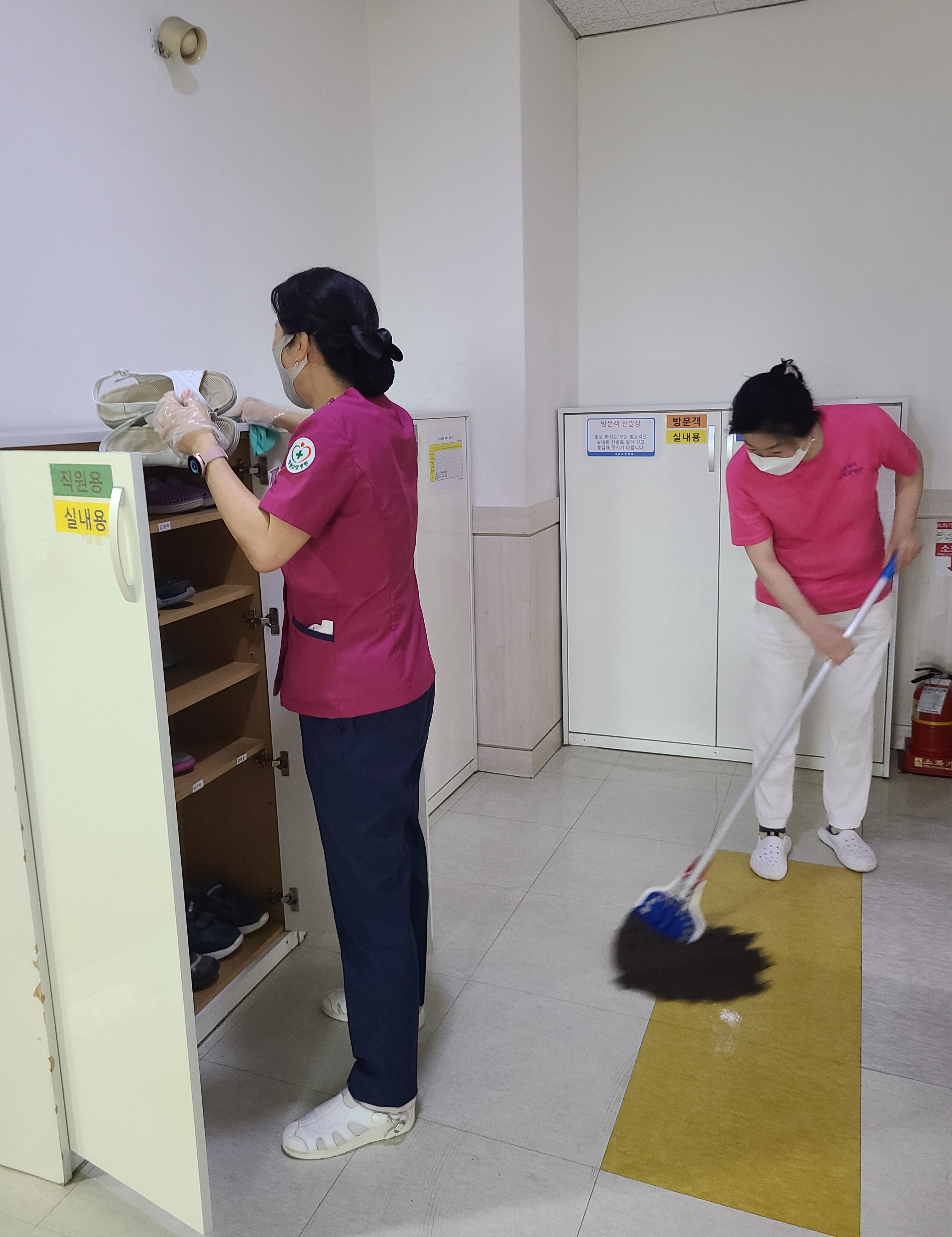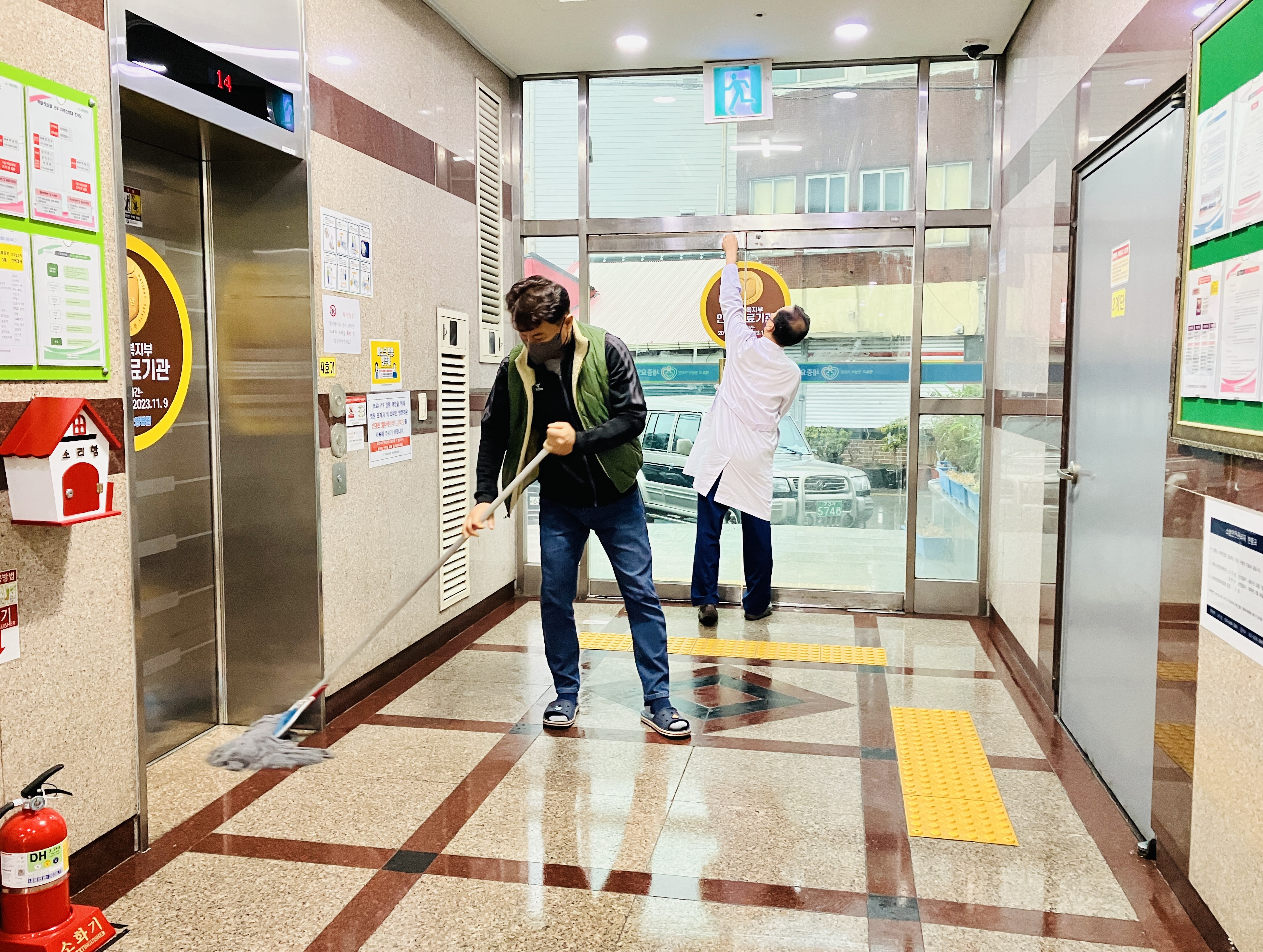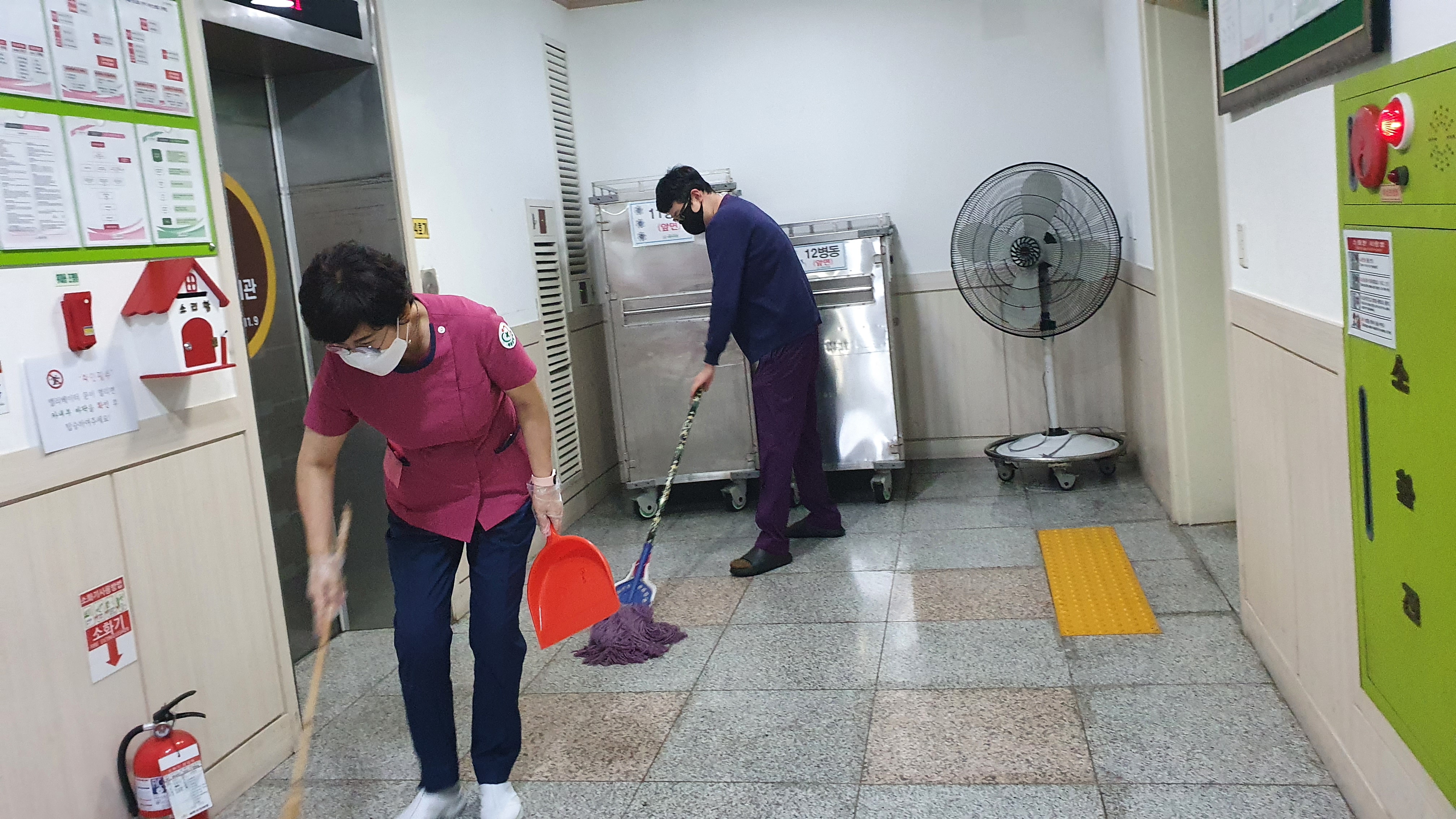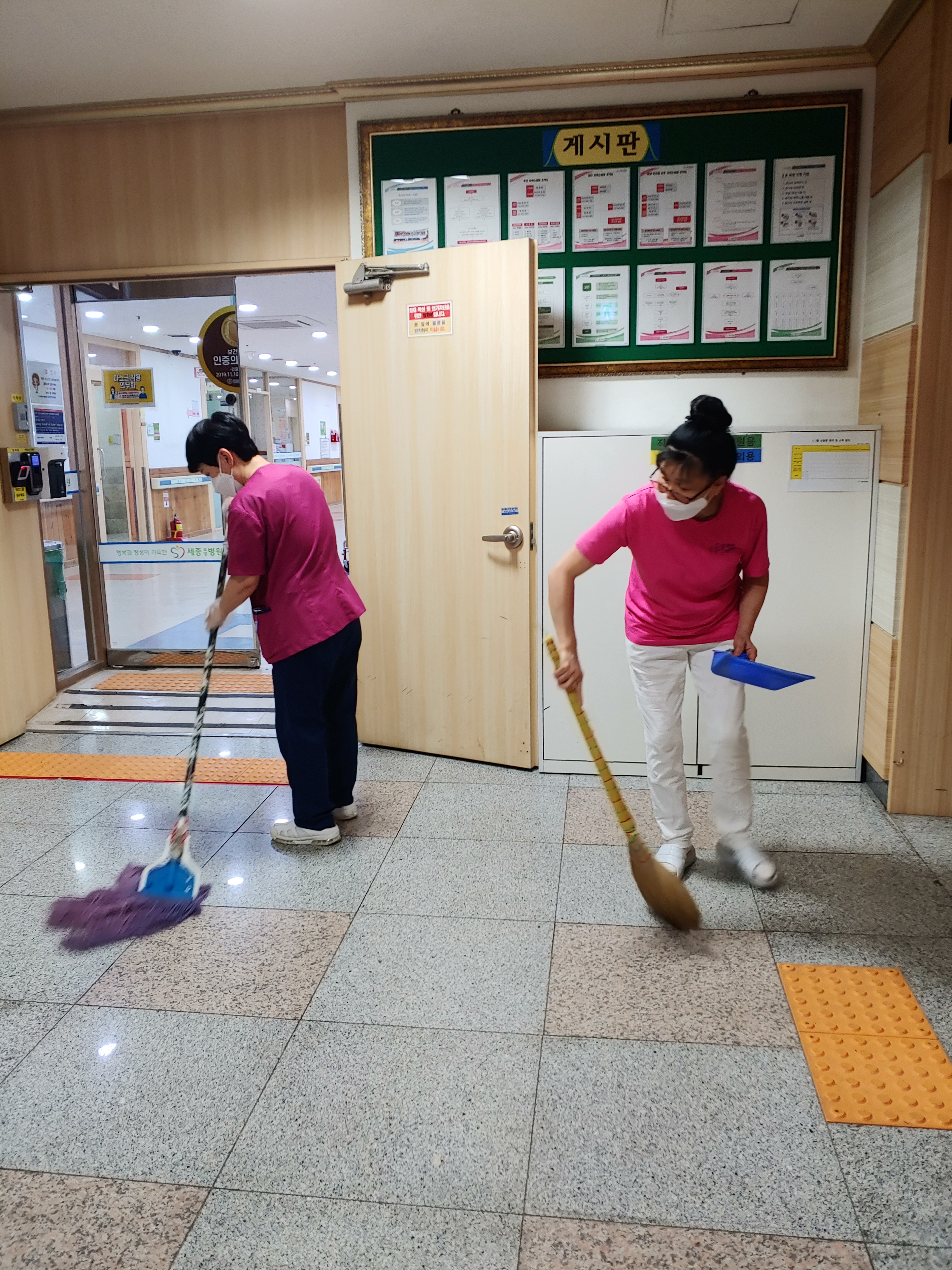 병원 주변을 청소하기 위해