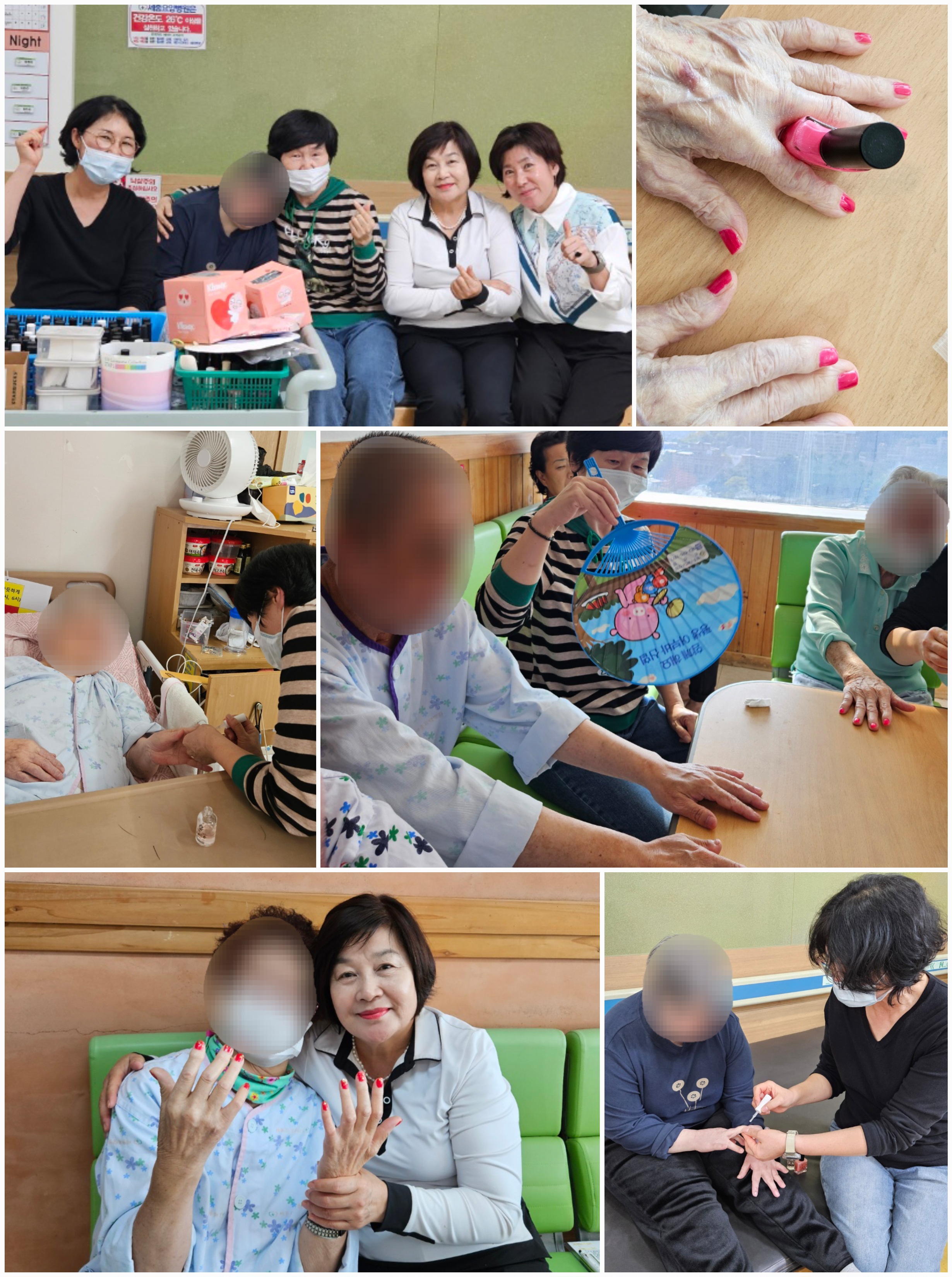 어르신들의 손톱도 예쁘게 물이듭니다.