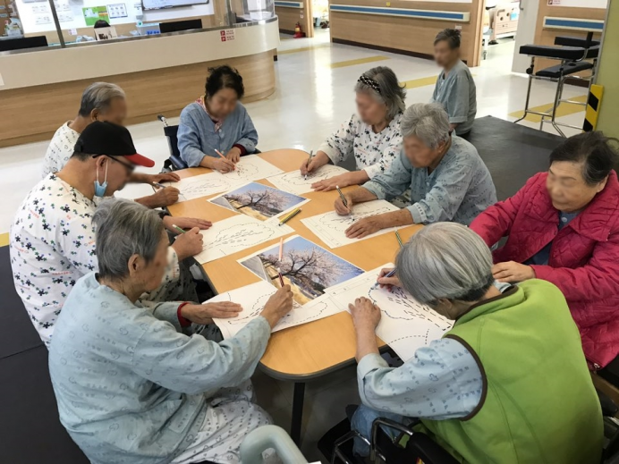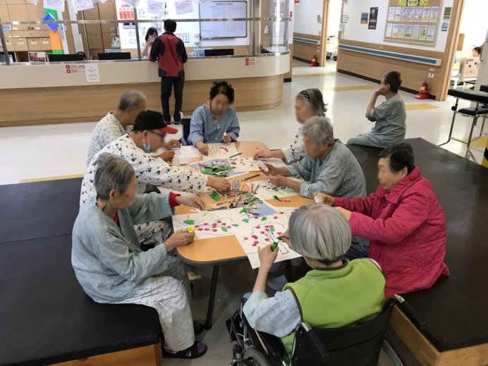 14병동 어르신들께서 인지활동으로 봄동산 꾸미기를 실시하셨습니다.