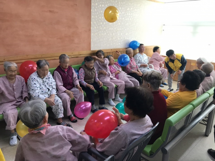 15병동 어르신들께서 14병동에서 14병동 어르신들과 함께