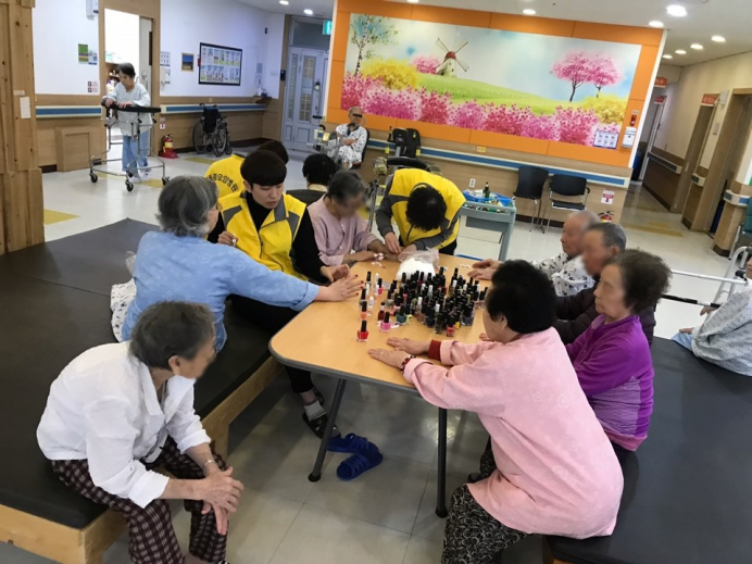 여가활동으로 네일아트를 받으셨습니다.