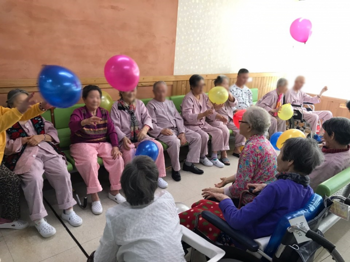 신체활동으로 풍선배구를 실시하셨습니다.