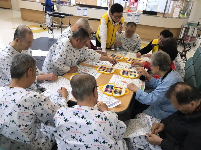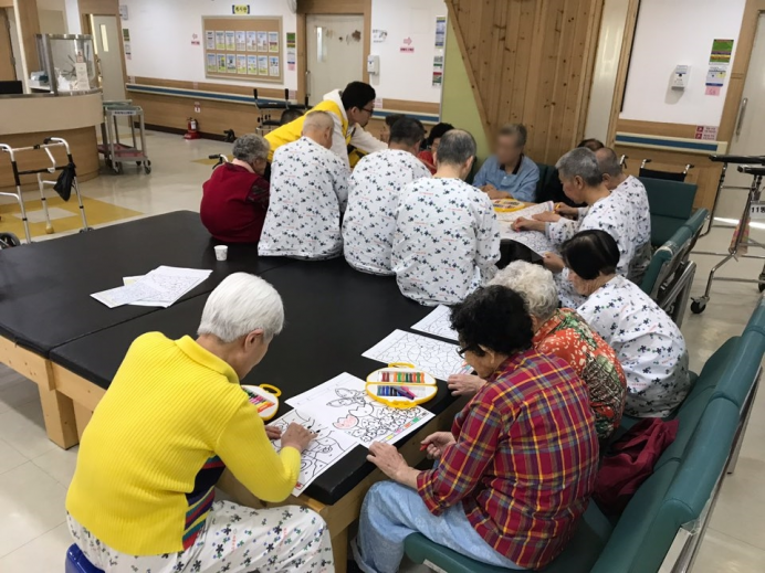11병동 어르신들께서 미술활동으로 색칠하기를 실시하셨습니다.