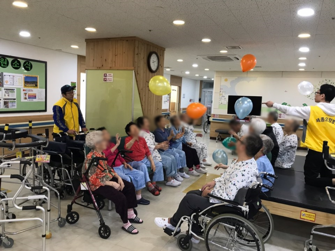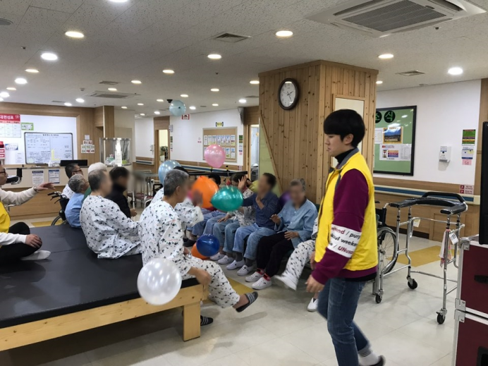 11병동 어르신들께서 신체활동으로 풍선배구를 실시하셨습니다.