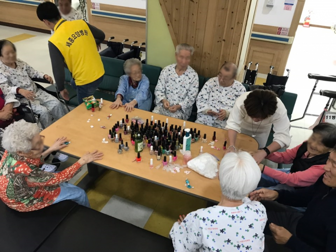 여가활동으로 네일아트를 받으셨습니다.