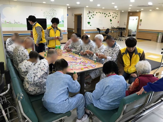 11병동 어르신들께서 건강체조와 건강박수를 따라하신 후