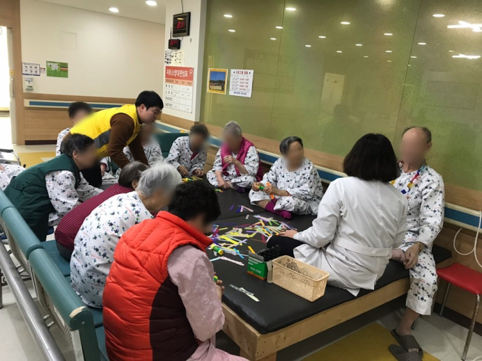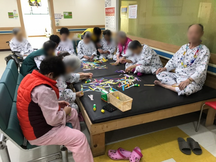 13병동 어르신들께서 건강체조와 건강박수를 따라하신 후