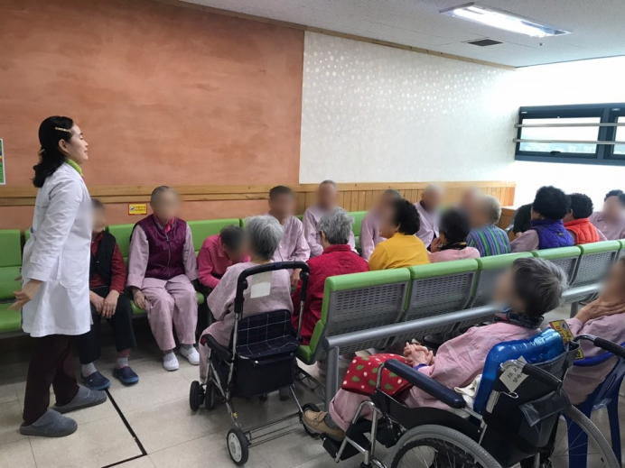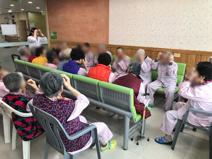 14병동 15병동어르신들께서 14병동에 모이셔서 실버인지체조를 하셨습니다.
