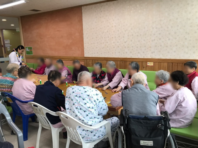 14병동 15병동 어르신들께서 건강체조와 건강박수를 따라하신 후