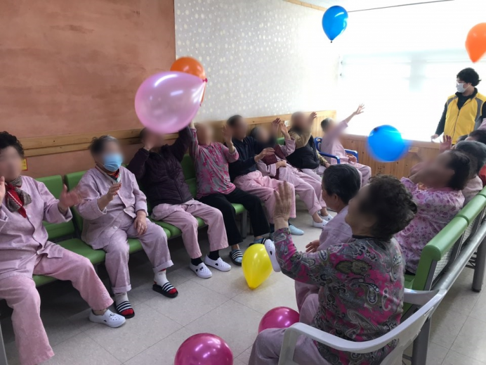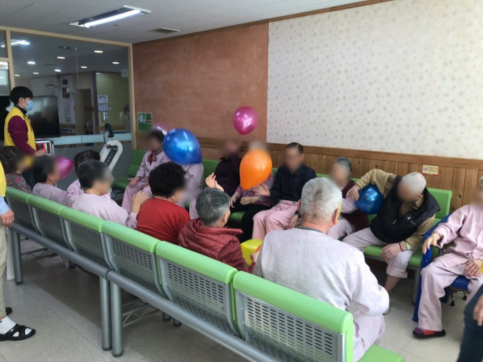 14병동 어르신들께서 신체활동으로 풍선배구를 실시하셨습니다.