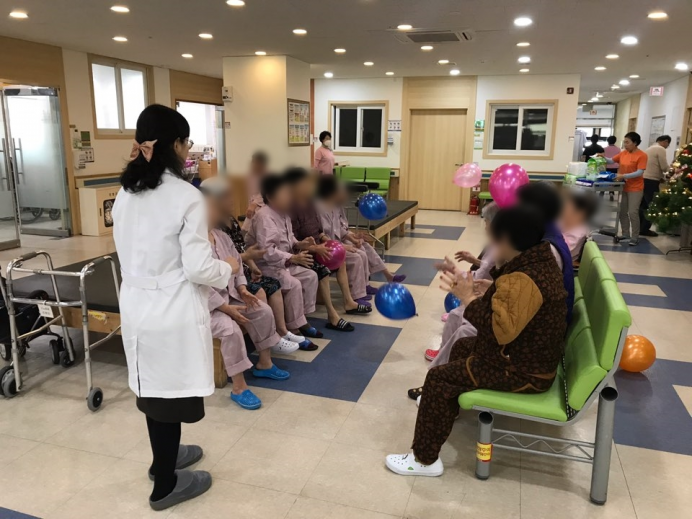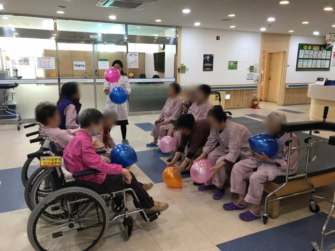 15병동 어르신들께서 신체활동으로 풍선배구를 실시하셨습니다.