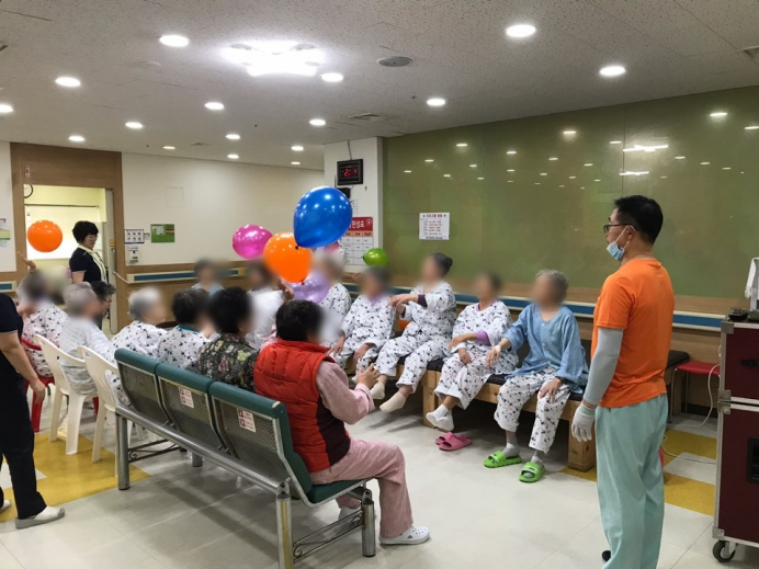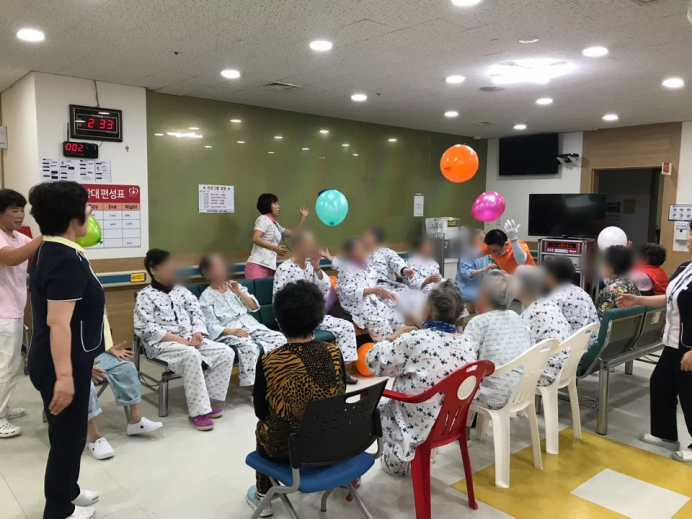 13병동 어르신들께서 신체활동으로 풍선배구를 실시하셨습니다.