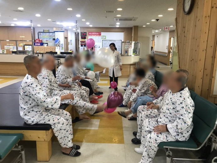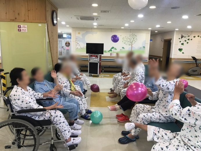 11병동 어르신들께서 신체활동으로 풍선배구를 실시하셨습니다.