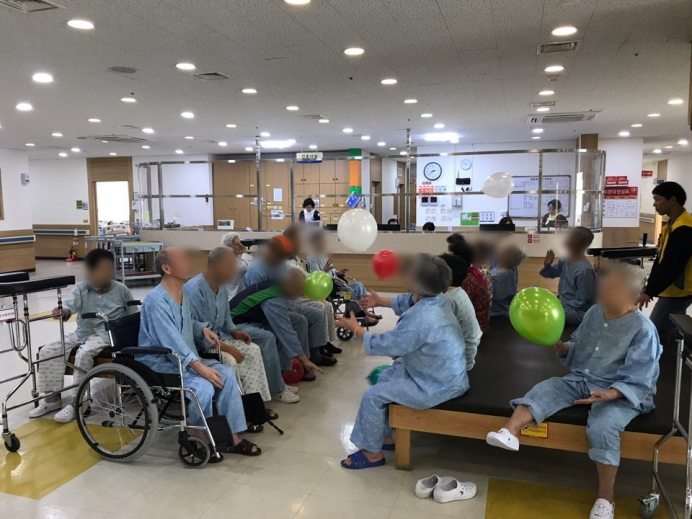 12병동 어르신들께서 신체활동으로 풍선배구를 실시하셨습니다.