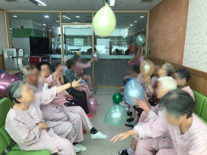 14병동 어르신들께서 신체활동으로 풍선배구를 실시하셨습니다.