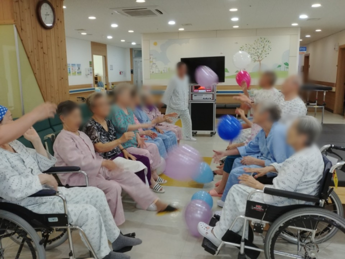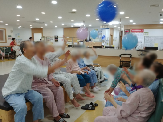 11병동 어르신들께서 신체활동으로 풍선배구를 실시하셨습니다.