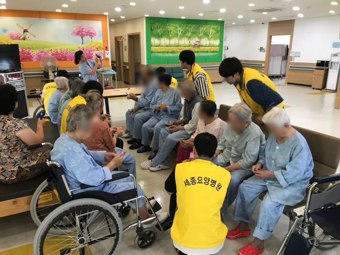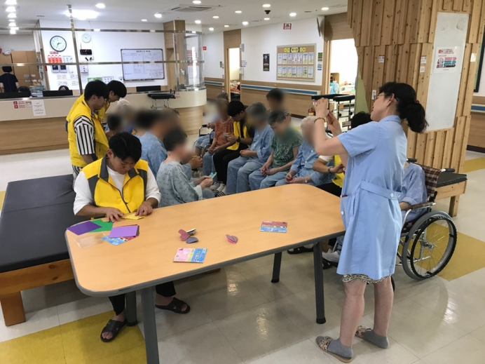 12병동 어르신들께서 건강체조와 건강박수를 따라하신 후