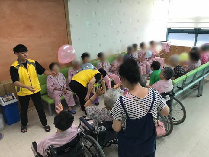 11병동, 15병동 어르신들께서 신체활동으로 풍선배구를 실시하셨습니다.