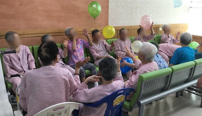 13병동, 14병동 어르신들께서 신체활동으로 풍선배구를 실시하셨습니다.