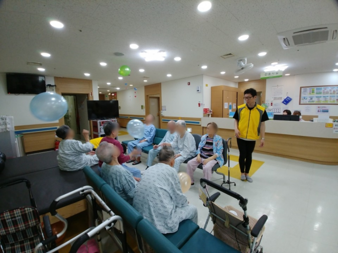 13병동 어르신들께서 신체활동으로 풍선배구를 실시하셨습니다.