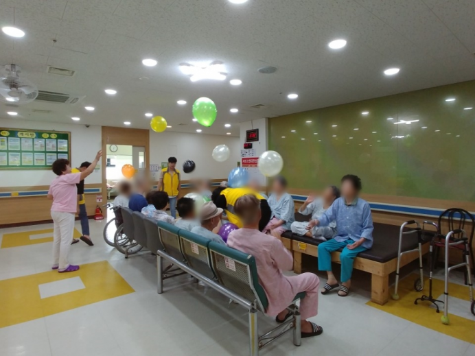 13병동, 14병동 어르신들께서 신체활동으로 풍선배구를 실시하셨습니다.