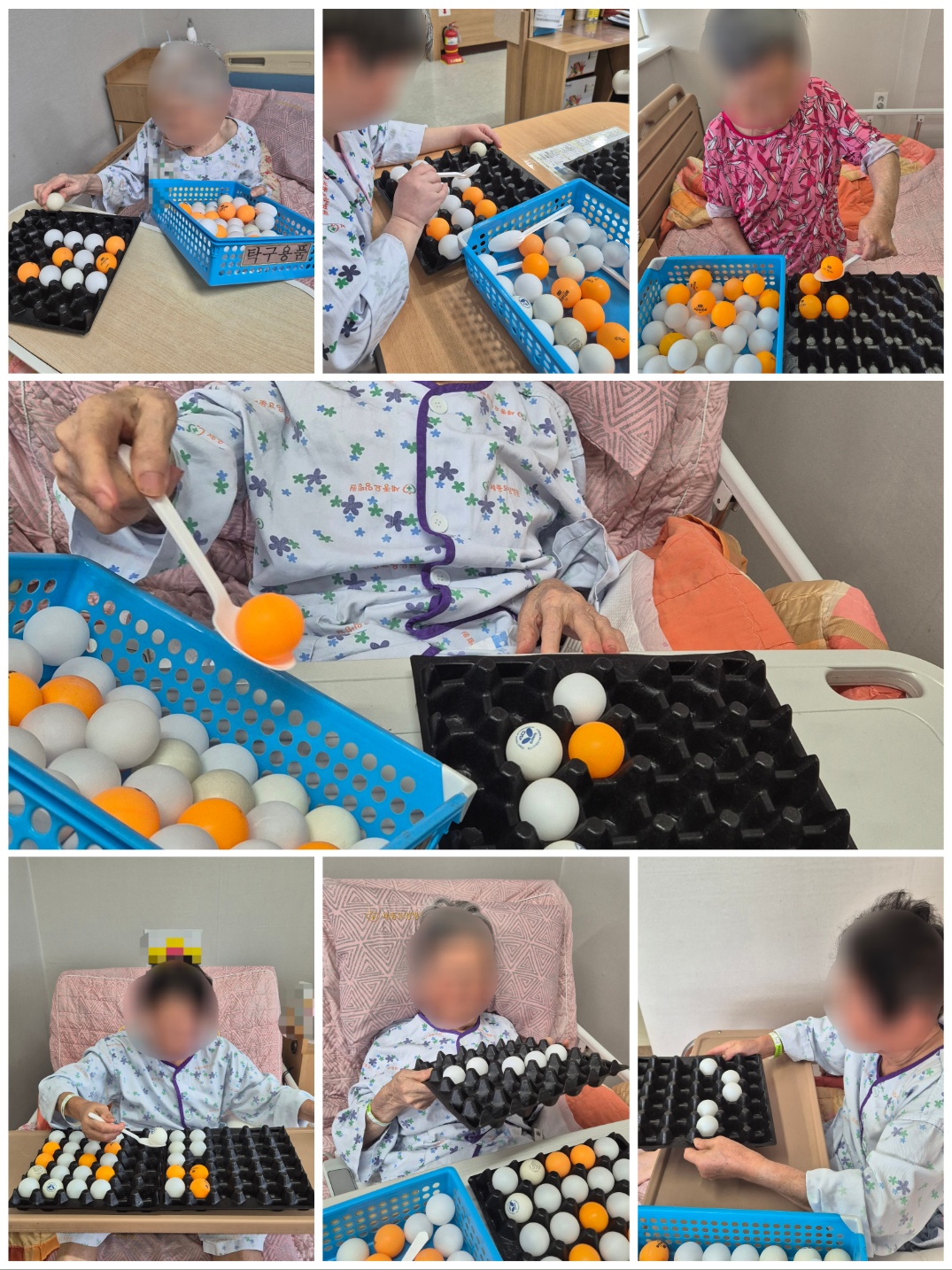 병실에서 탁구공 놀이를 해보았습니다.