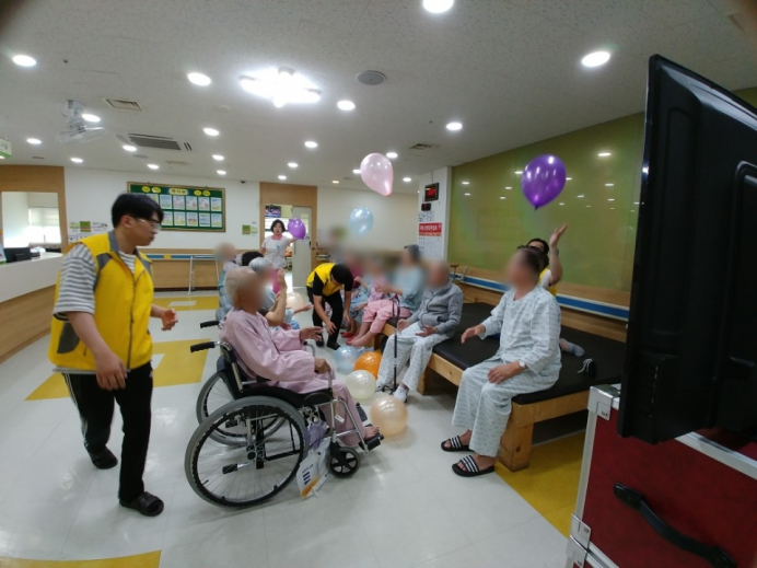 13병동, 15병동 어르신들께서 신체활동으로 풍선배구를 실시하셨습니다.