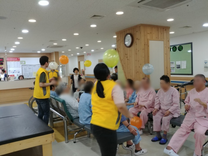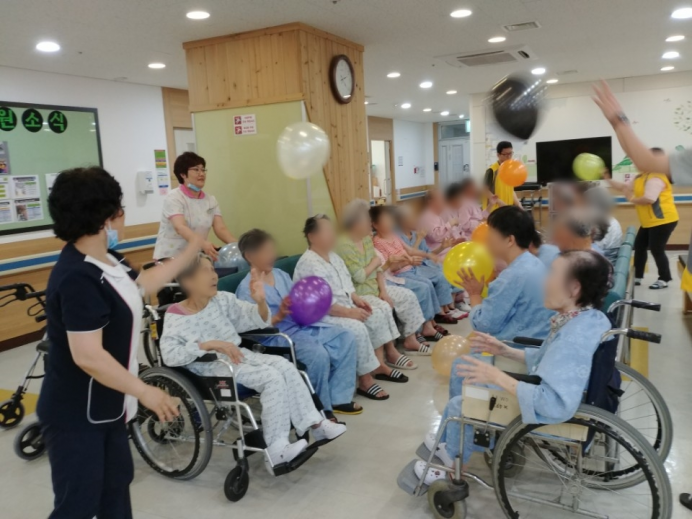 11병동 어르신들께서 신체활동으로 풍선배구를 실시하셨습니다.