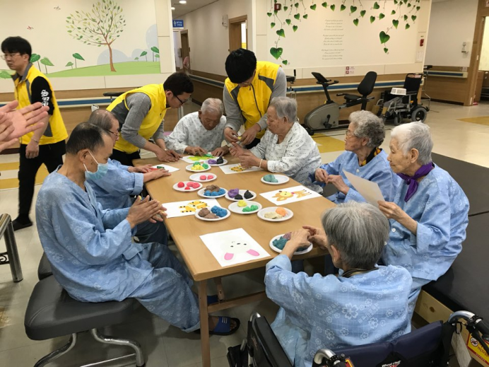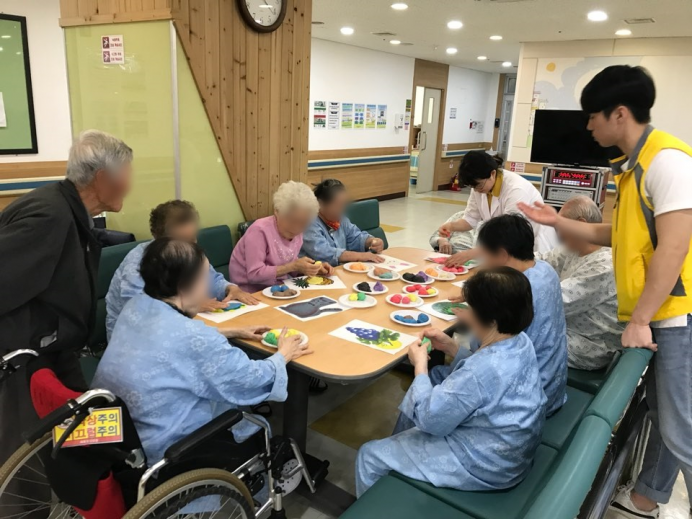 11병동 어르신들께서 미술치료로 밀가루 반죽을 가지고 색칠하기를 실시하였습니다.