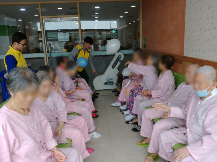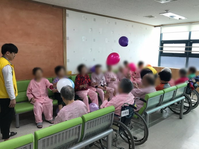 14병동, 15병동 어르신들께서 신체활동으로 풍선배구를 실시하셨습니다.