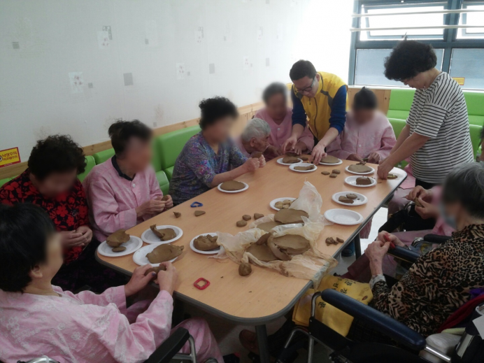 15병동 어르신들께서 감각활동으로 찰흙만들기를 하셨습니다.