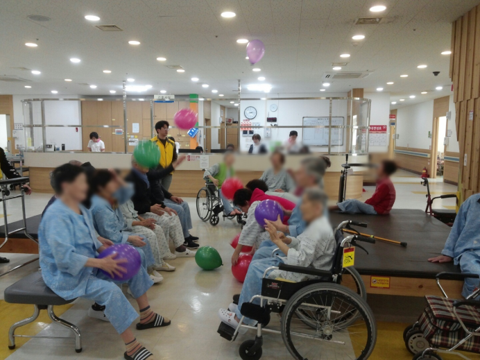 12병동 어르신들께서 신체활동으로 풍선배구를 실시하셨습니다.