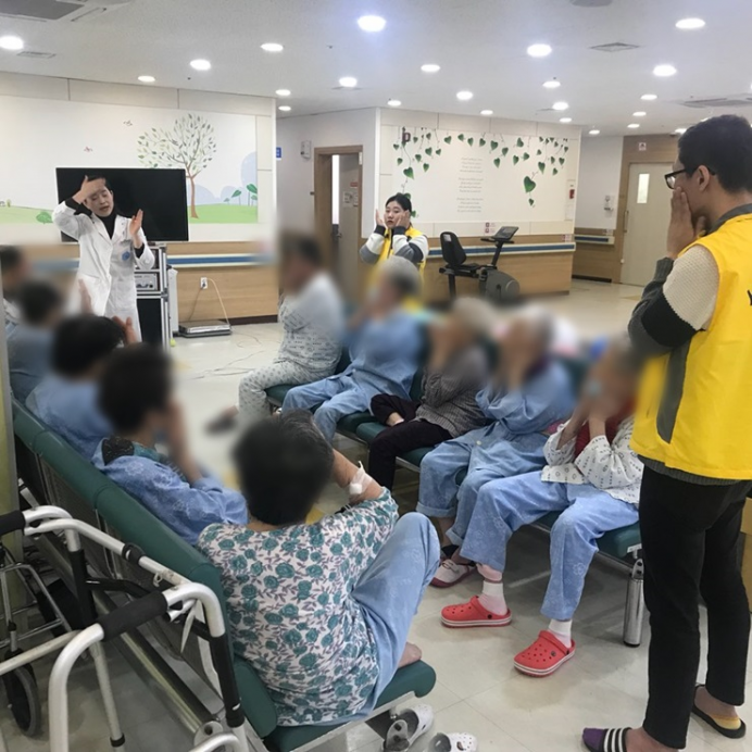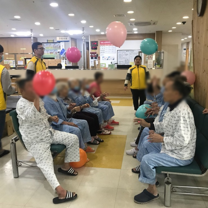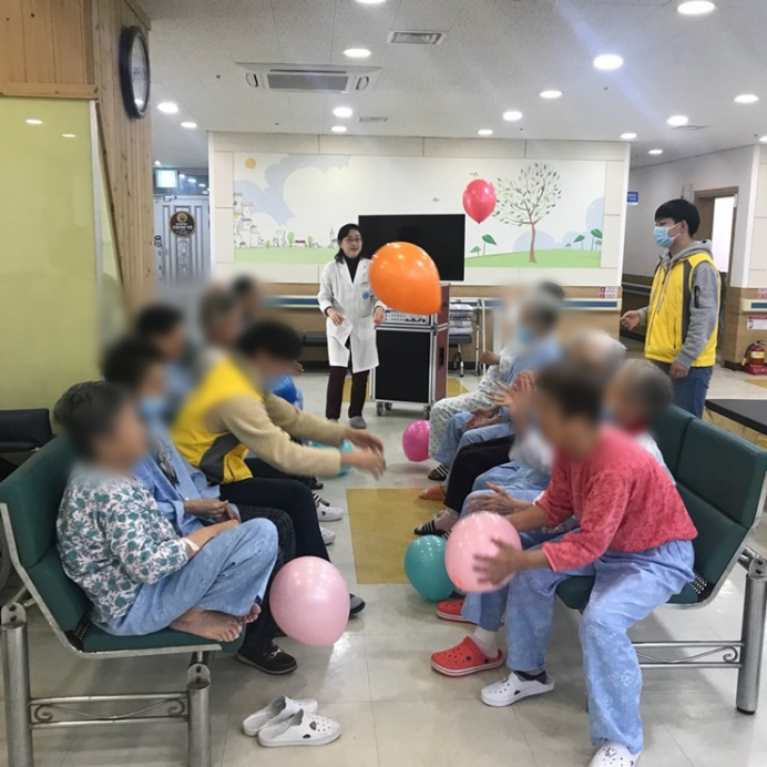 11병동 어르신들께서 신체활동으로 풍선배구를 실시하셨습니다.