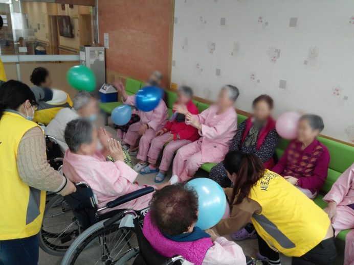 15병동 어르신들께서 신체활동으로 풍선배구를 실시하셨습니다.