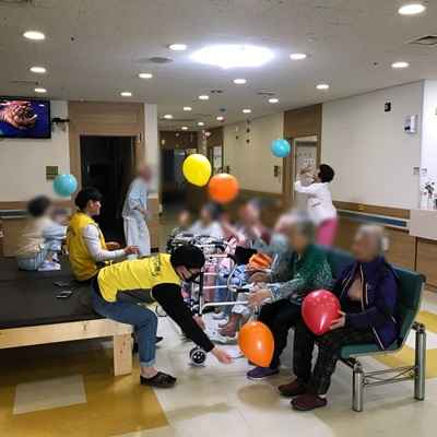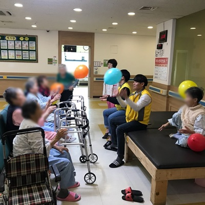 13병동 어르신들께서 신체활동으로 풍선배구를 실시하셨습니다.