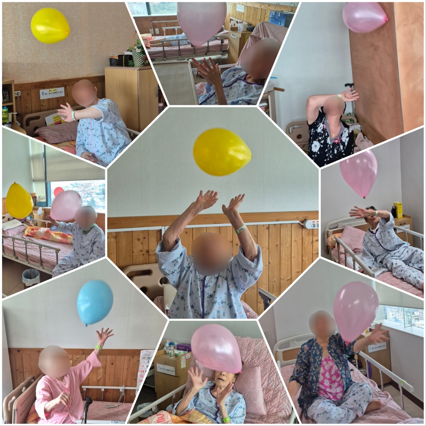 병실에서 풍선 배구 프로그램을 실시했습니다.