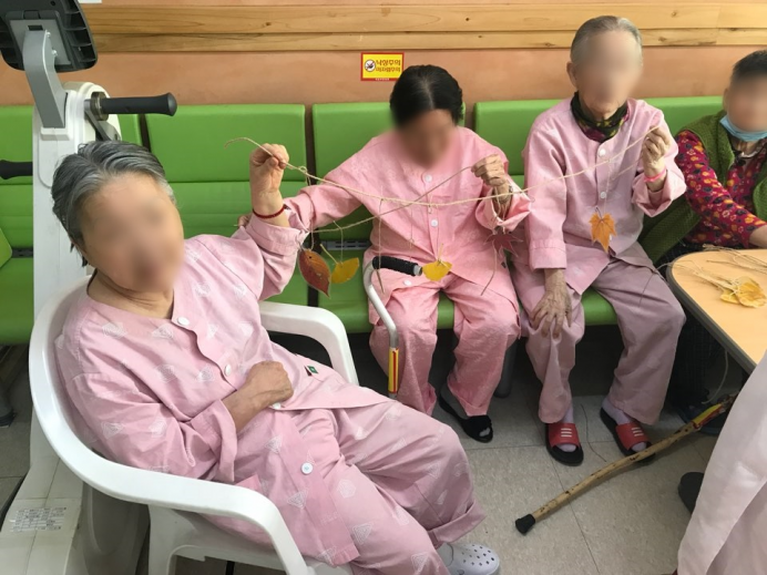 세종요양병원 어르신들께서 가을을 맞이하여 낙엽을 이용해서 모빌만들기를 실시하였습니다.