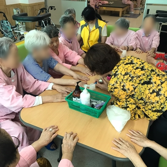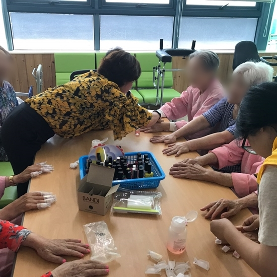 15병동 어르신들께서 네일아트로 손톱 정리 및 매니큐어를 바르셨습니다.