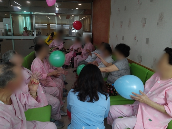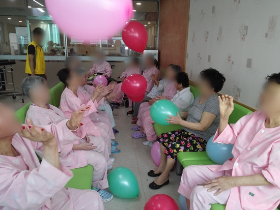 15병동 어르신들께서 신체활동으로 풍선배구를 하셨습니다.