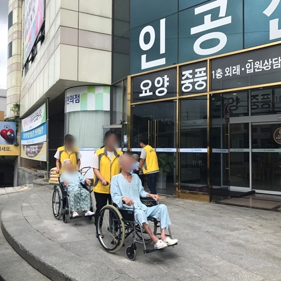 어르신들께서 휠체어산책을 실시하셨습니다.
