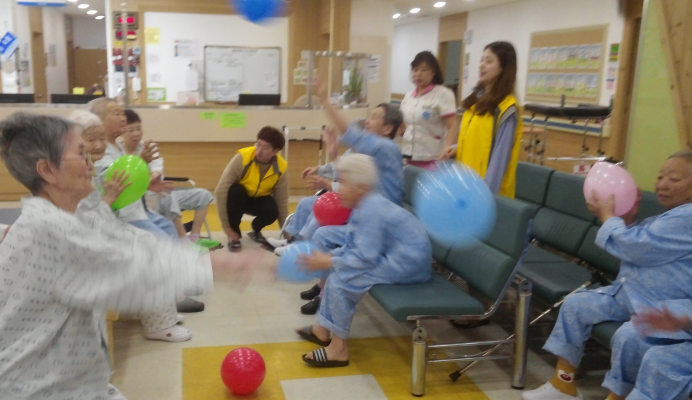 11병동 어르신들께서 풍선배구를 매우 즐겁게 실시하셨습니다.