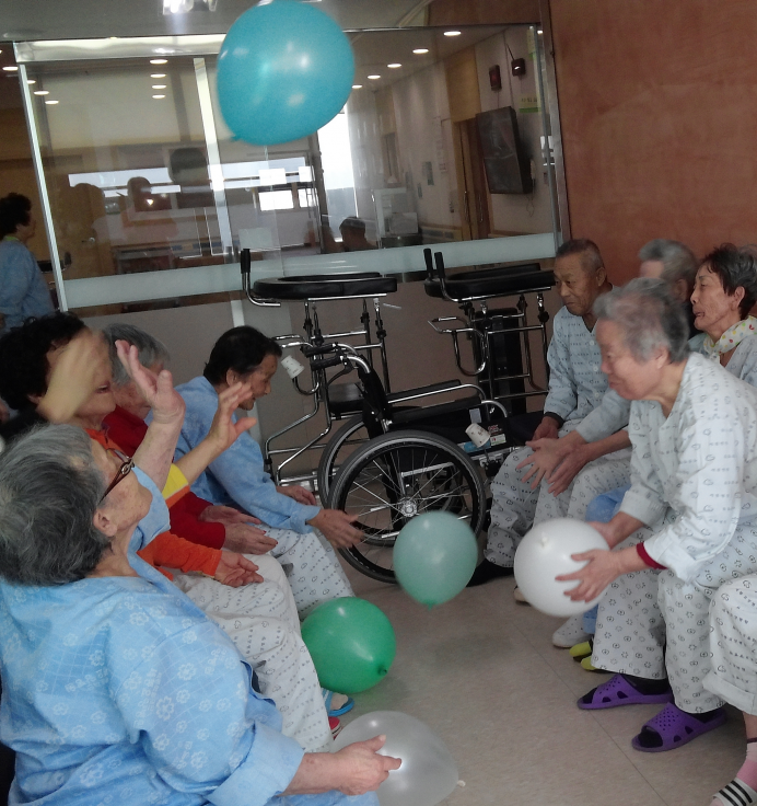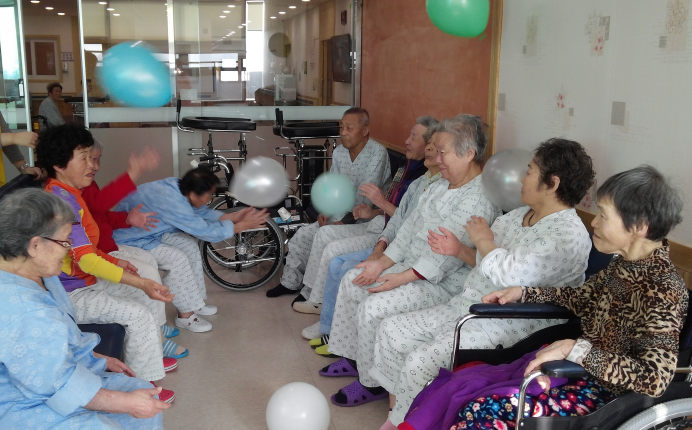 15병동 어르신들께서 건강체조로 몸을 이완시킨 후