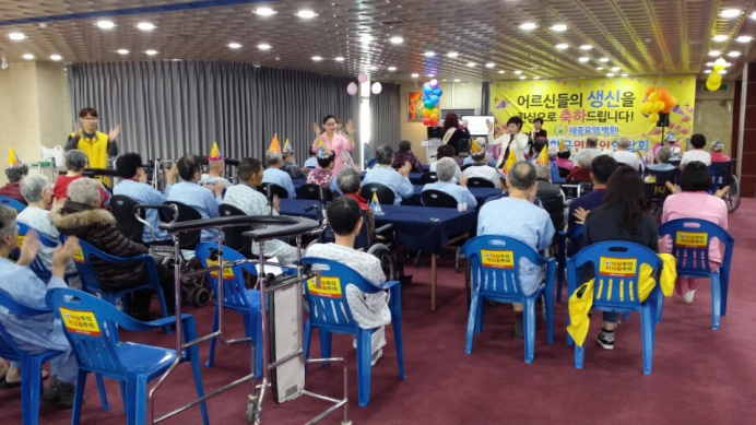생신잔치 행사에 많은 어르신들께서 참석하셨습니다.