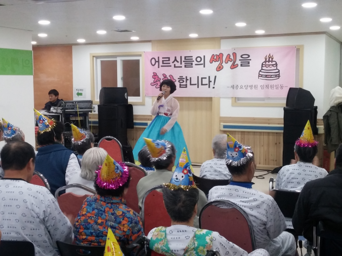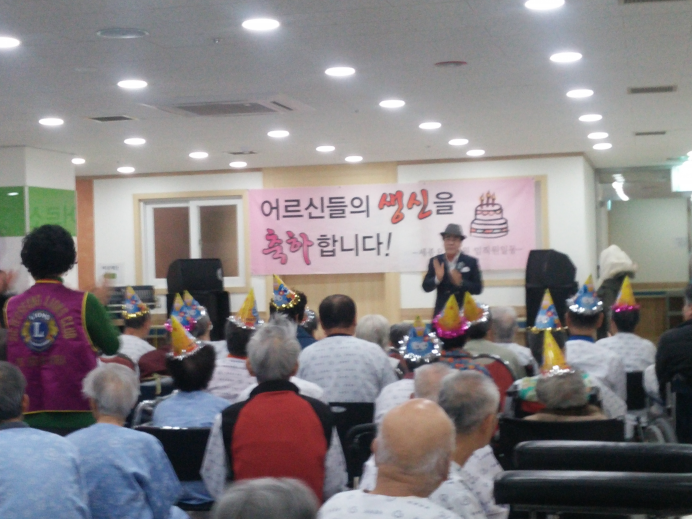 구제길 회장님께서 어르신들을 축하해주시기 위해 노래를 불러 주셨습니다.