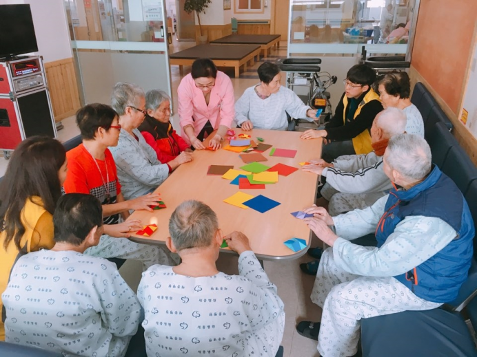 15병동 어르신들과 조형활동으로 하트접기를 하였습니다.